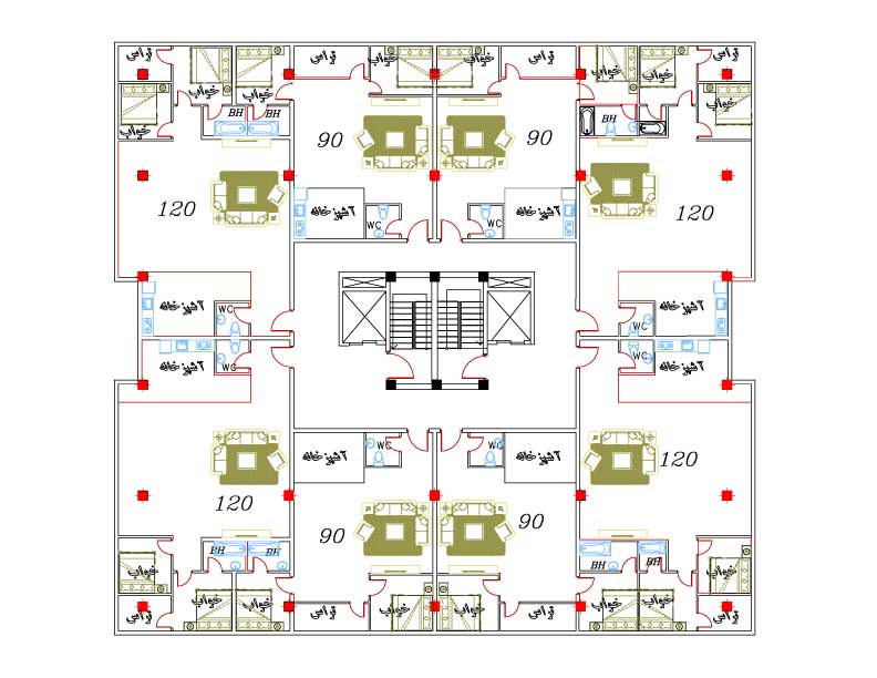 هر طبقه از برجهای پروژه دارای هشت واحد مسکونی است.